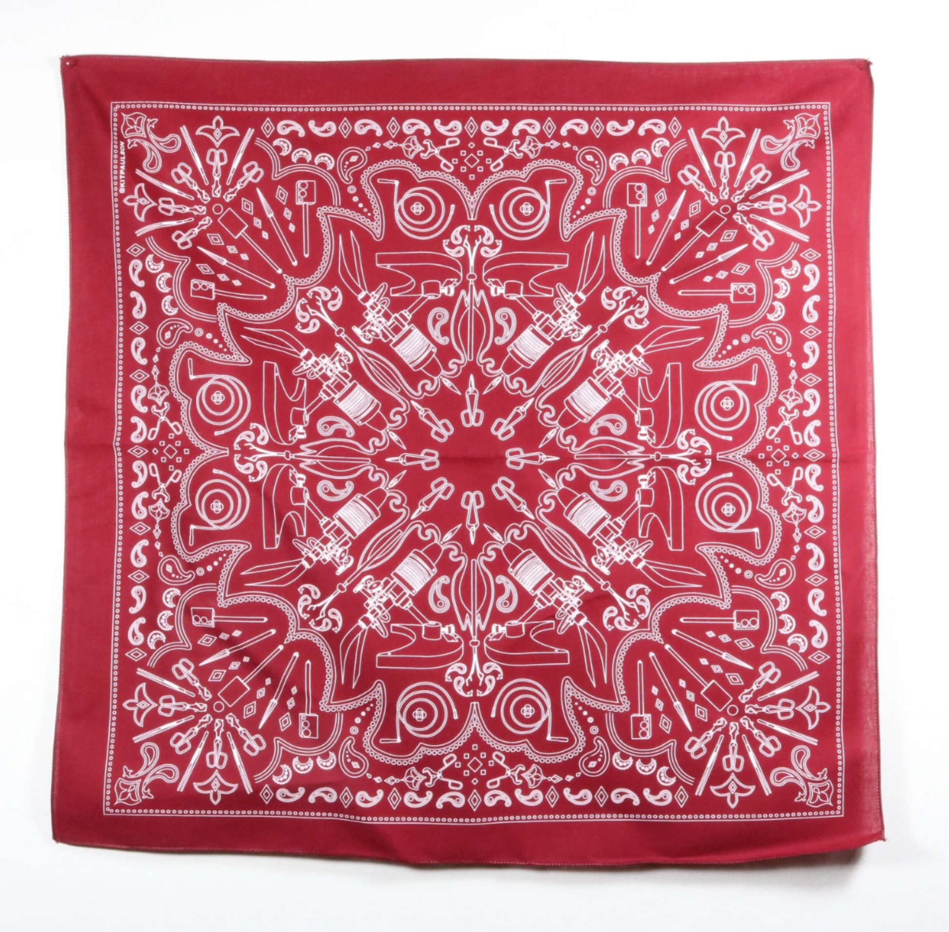 This bandana is my original design printed on a 100% cotton bandana with chain stitched edges. The bandana is a generous 22” x 22” and it will arrive in your hands with a new, crisp feeling that softens with repeated washings.