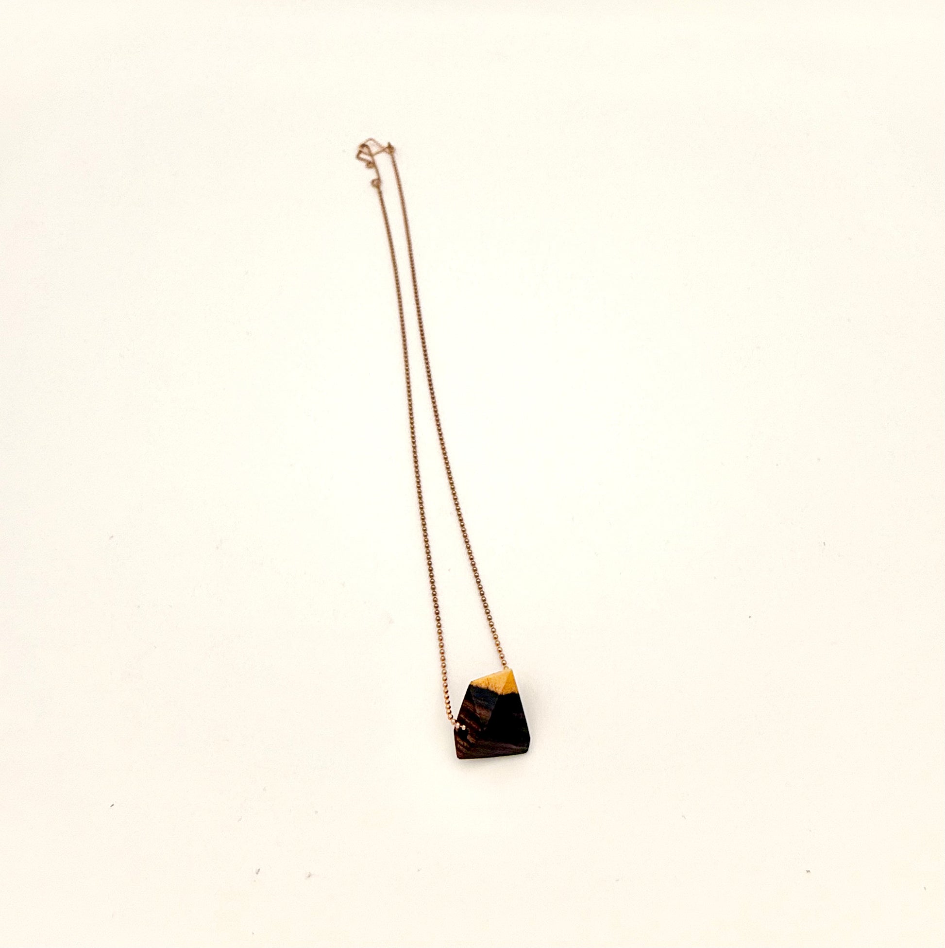 From Brazil (and occasionally Mexico), known for its regal history, Kingwood it is aptly named. It was favored by French kings such as Louis XIV and Louis XV in the 17th and 18th centuries. Pendant dimensions: 15 x 18 x 10 mm. on a 16 in. rose gold plated sterling silver chain.